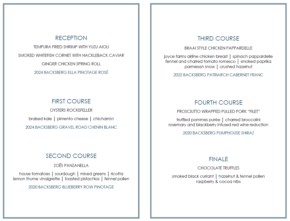 Wine: All Backsberg wines.